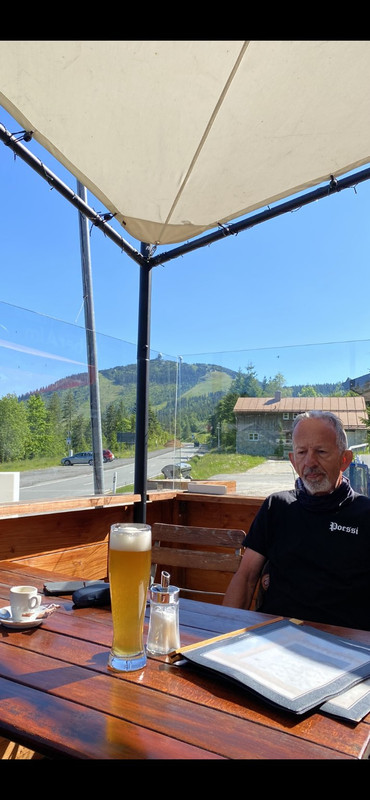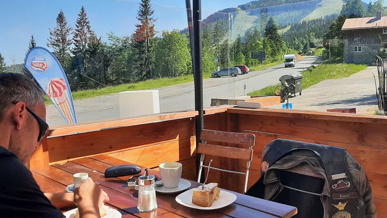 Von Bayer.Eisenstein fuhren wir dann zum Brennes immer den Arber im Blick um uns hier auf der Arberalm noch einen Kaffee, Espresso, alkoholfreies Weizen und Kuchen schmecken zu lassen.