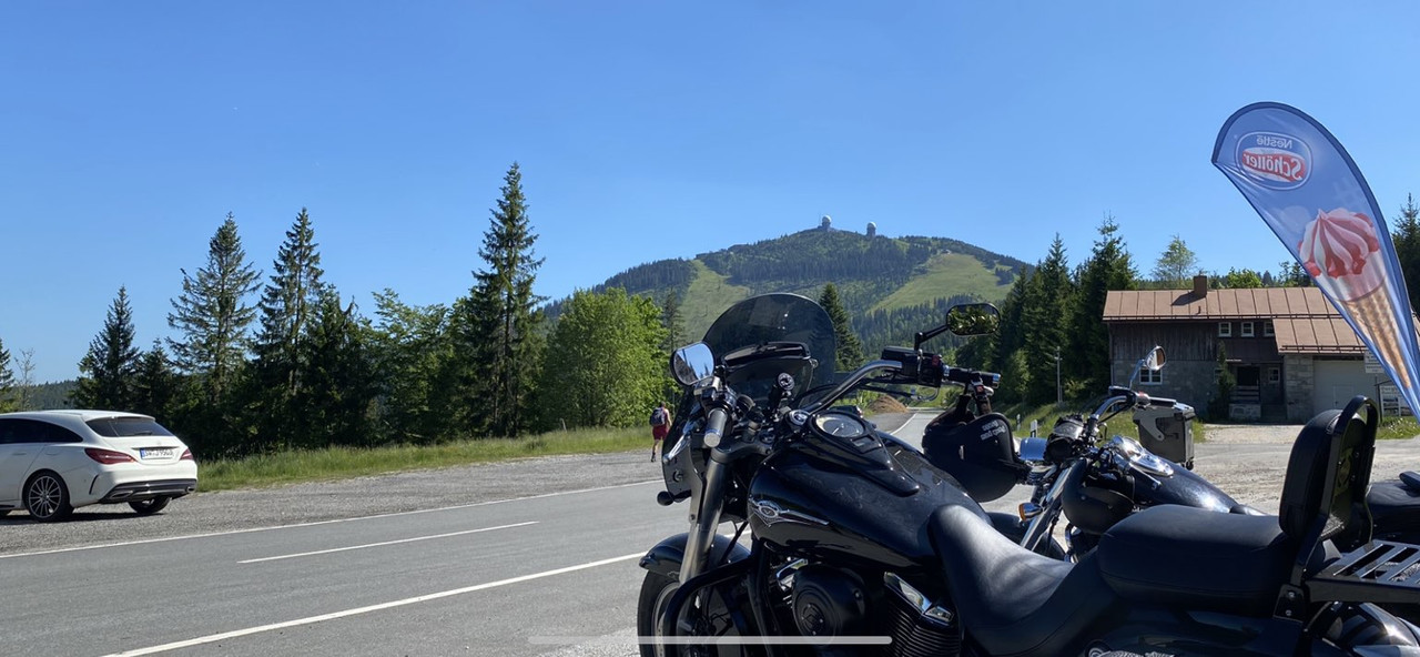 Zitat von Poessi am 15. Juni 2021, 13:49 UhrWolle und ich haben den gestrigen Montag ausgenutzt und sind eine herrliche Tour in den Bayerwald und den tschechischen Nationalpark Sumava gefahren. Das Wetter war bombig und es herrschte wenig Verkehr. Um 1/2 12 Uhr waren wir beim Terassencafe Monika und zum Glück hatten die auch offen. So gabs gleich mal eine Brotzeit. Leckere Pfälzer mit Kraut. Zuerst aber der Ausblick auf Elisabethszell.