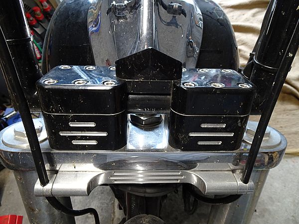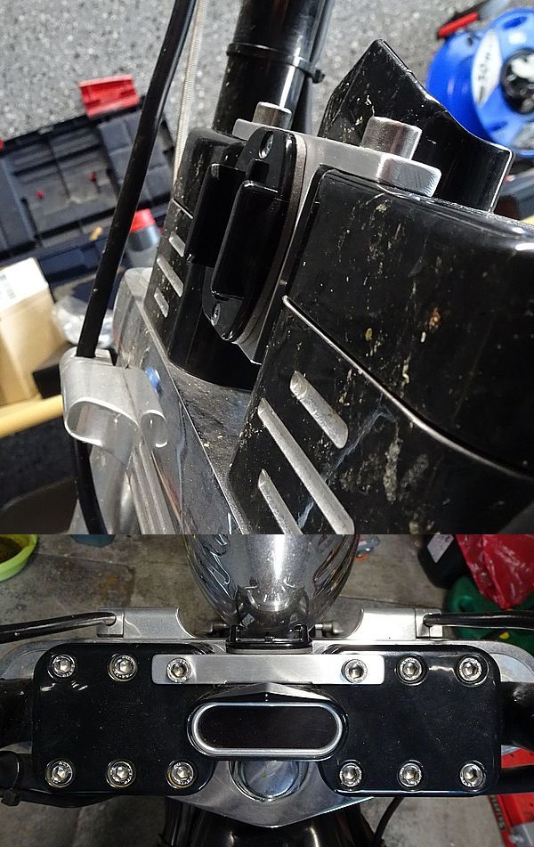 Nun mußte das Teil noch einen Platz am Motorrad finden. Und da reichte ein kurzer Blick auf die Front und ich hatte einen Plan, der kurz danach auch in Angriff genommen wurde. Von Vorteil war dabei meine selbstgefertigte Lenkerhalterung.
