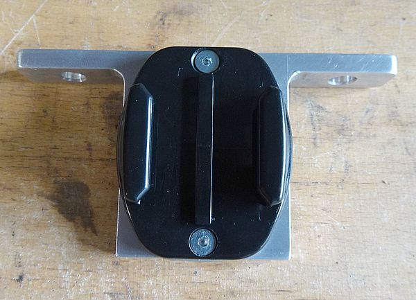 Die mitgelieferte Halteplatte hat zwar ein Klebepatt, aber ich fühle mich wohler, wenn da noch zwei M3er Schrauben die ganze Sache unterstützen.