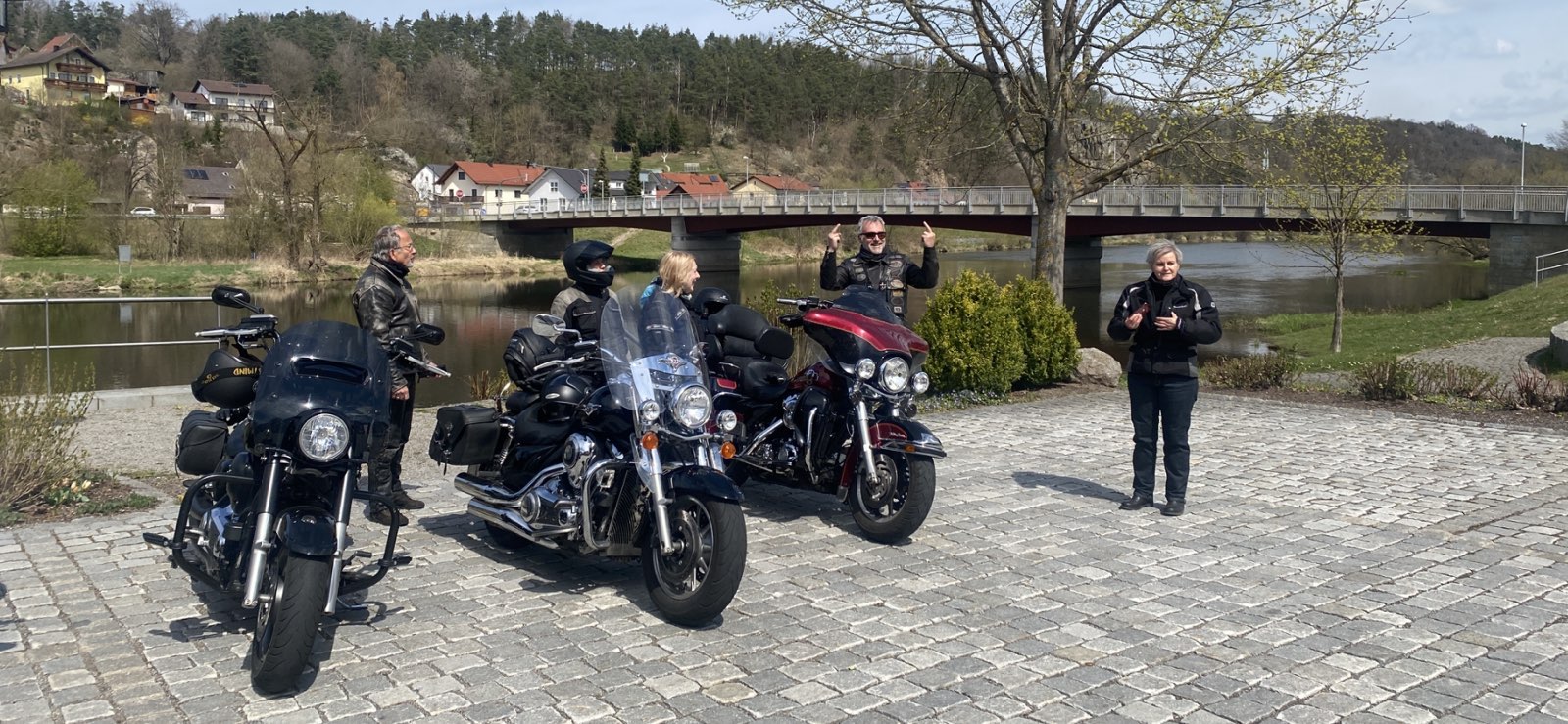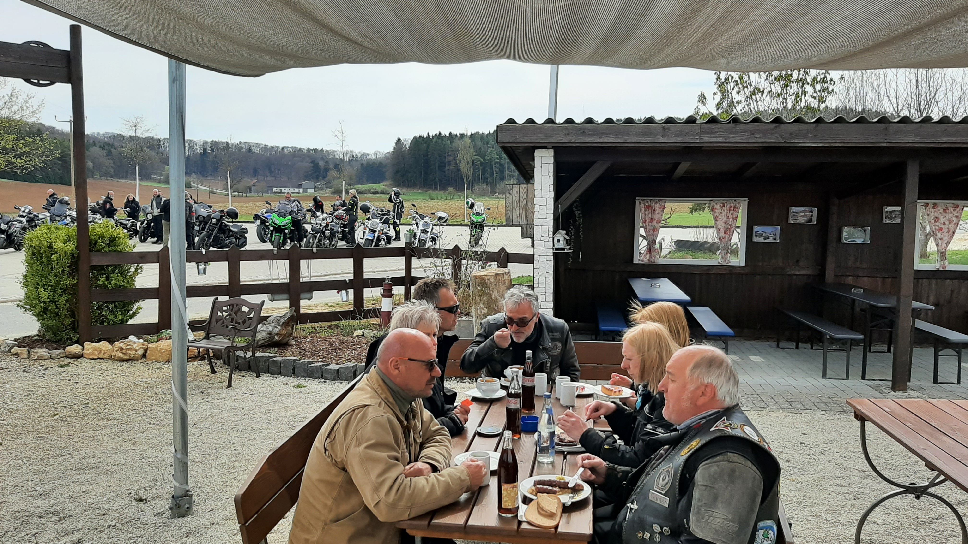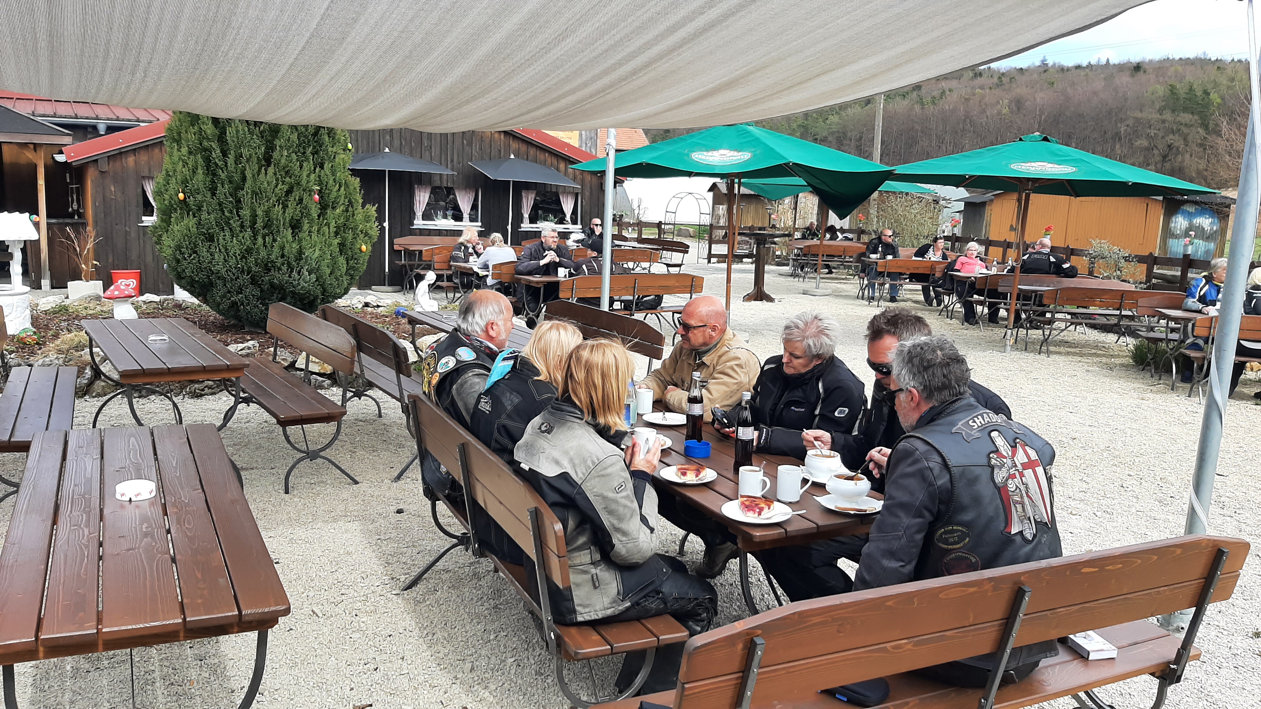 Zitat von Poessi am 17. April 2022, 19:05 UhrHeute haben wir eine herrliche Tour zur Fichtenranch unternommen. Dabei waren erst mal Wolfgang und Renate, Günter und Petra, ich und Manuela. In Nabburg hatten wir uns mit Max verabredet. Um 12.00 Uhr in Nabburg angekommen, traute ich meinen Augen nicht. Es war nicht nur Max, sondern auch ein Überraschungsgast mit einer roten Harley dagestanden u. zwar unser mozarth. Das hat mich wahnsinnig gefreut, das er bei den nicht gerade warmen Temperaturen die Anfahrt auf sich genommen hat. Mein Respekt.
