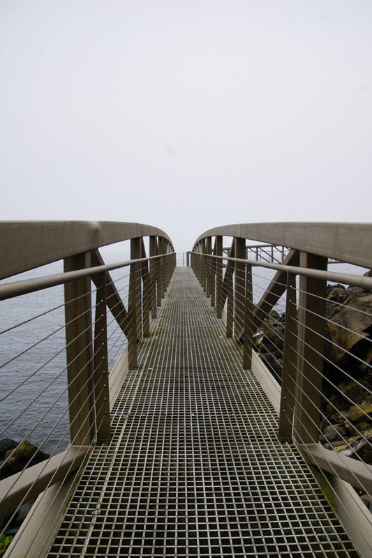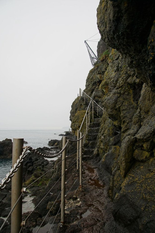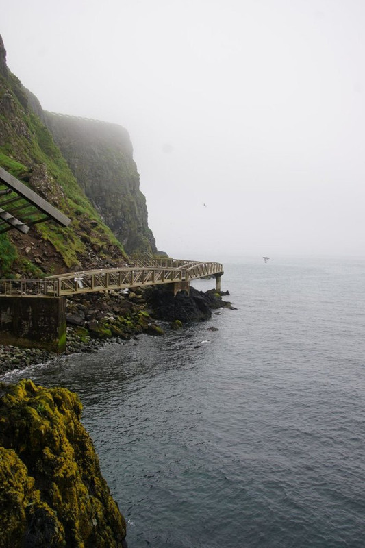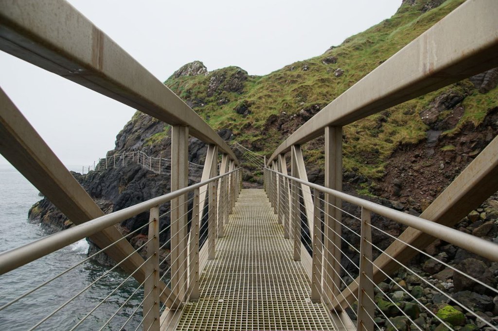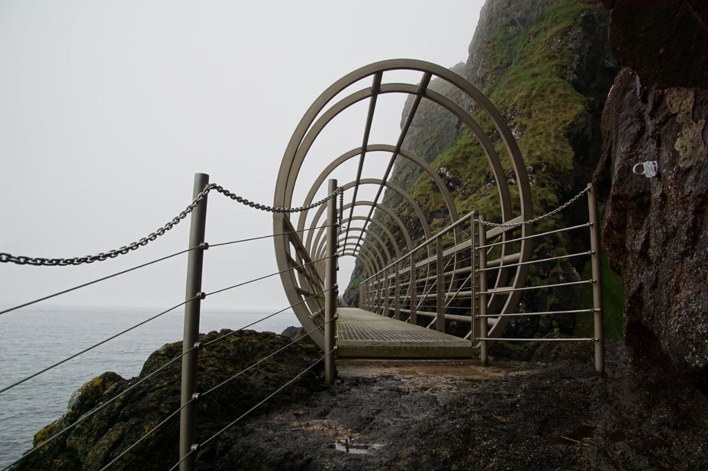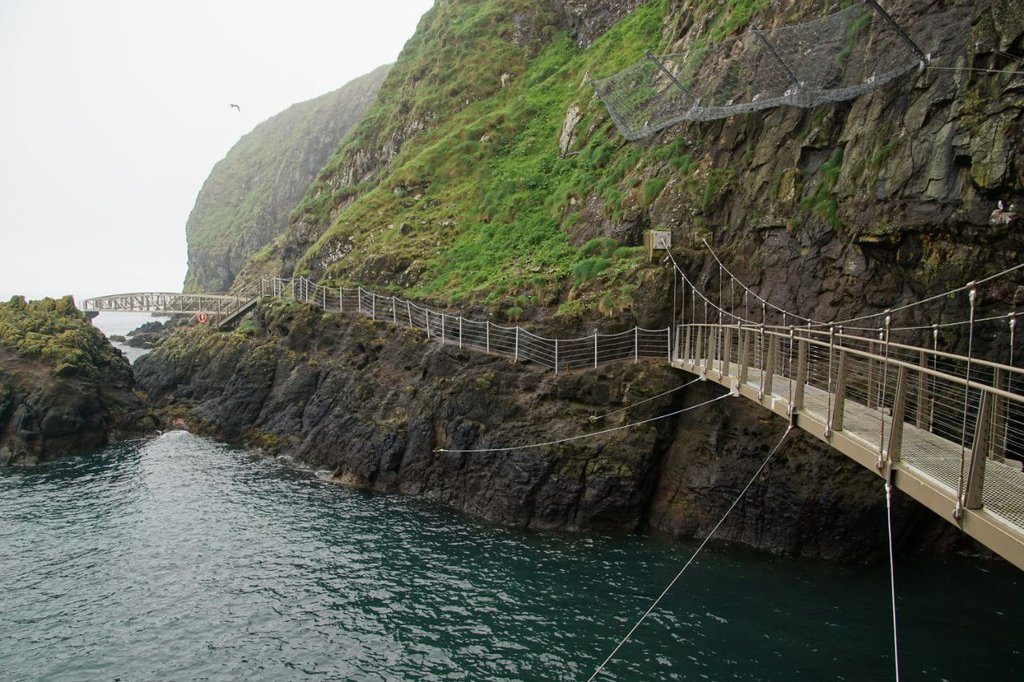 Über uns kreischen die Seevögel, die hier an den Klippen nisten, unter uns rauscht das Meer und vor uns liegen Brücken wie diese: