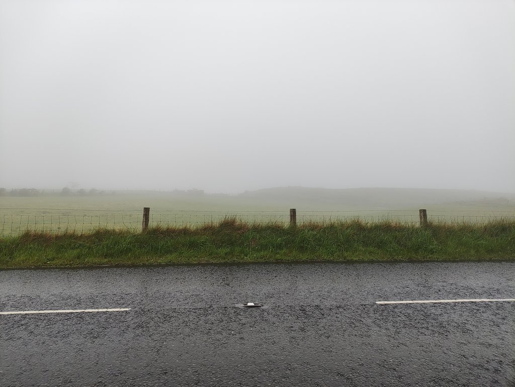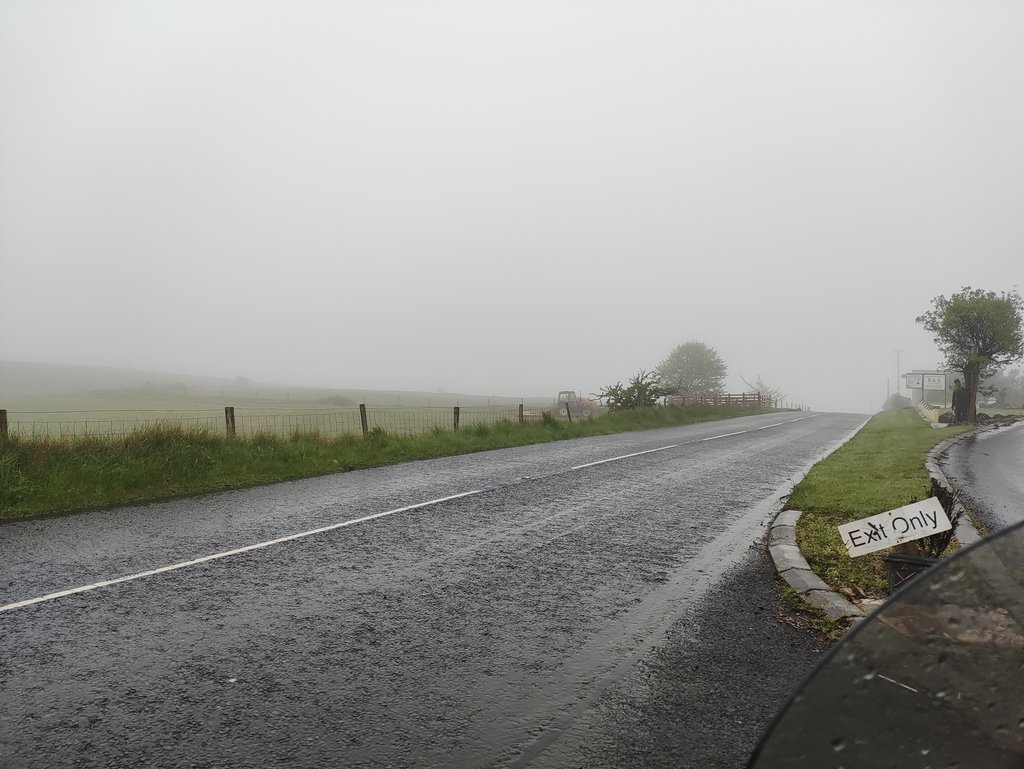 Gestern, als ich bergauf so wenig gesehen habe im Regen, dachte ich noch „Das Einzige, was es noch schlimmer machen würde, wäre Nebel.“ Und was soll ich sagen, mein Wunsch wurde erhört. Ein paar Kilometer weiter warten die Nebelbänke auf mich.