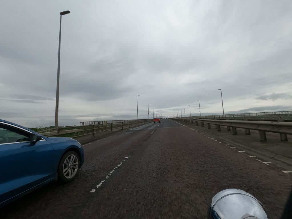 An die riesigen, dreispurigen Kreisverkehre hier habe ich mich inzwischen ganz gut gewöhnt. Ganz links ist nur für Linksabbieger, Wer geradeaus will nutzt einen der beiden rechten Streifen. Ich nehme immer den mittleren, damit muss ich beim Ausfahren aus dem Kreisverkehr nicht auf Autos von hinten achten und die Einfahrt ist auch sicherer – wenn der rechts von mir losfährt, bin ich safe.