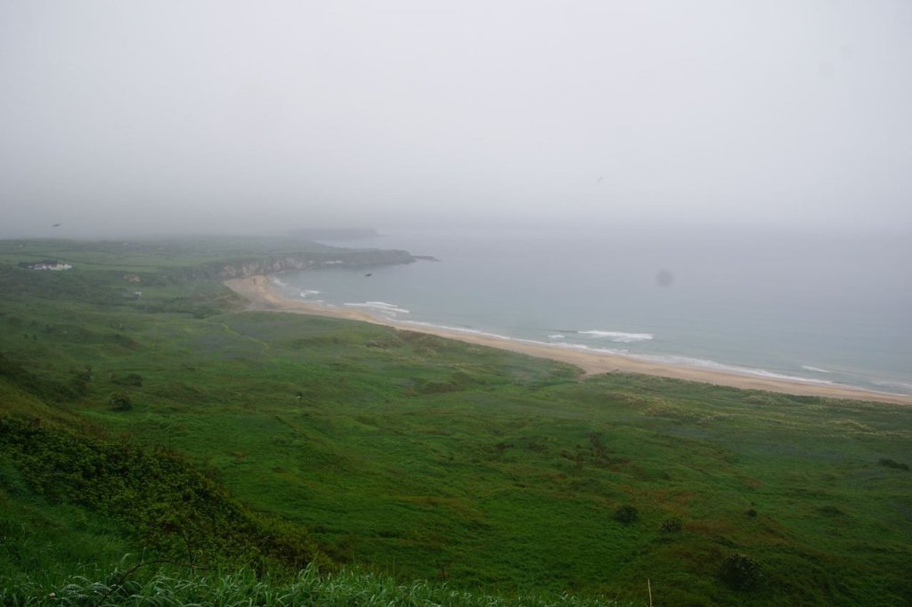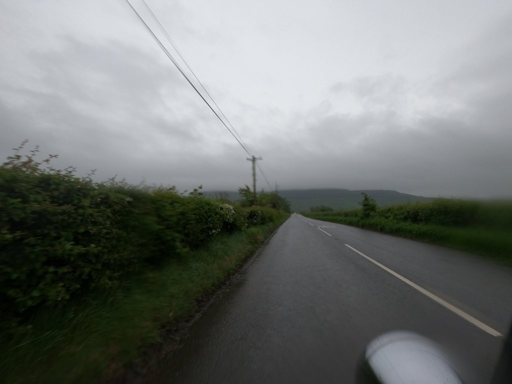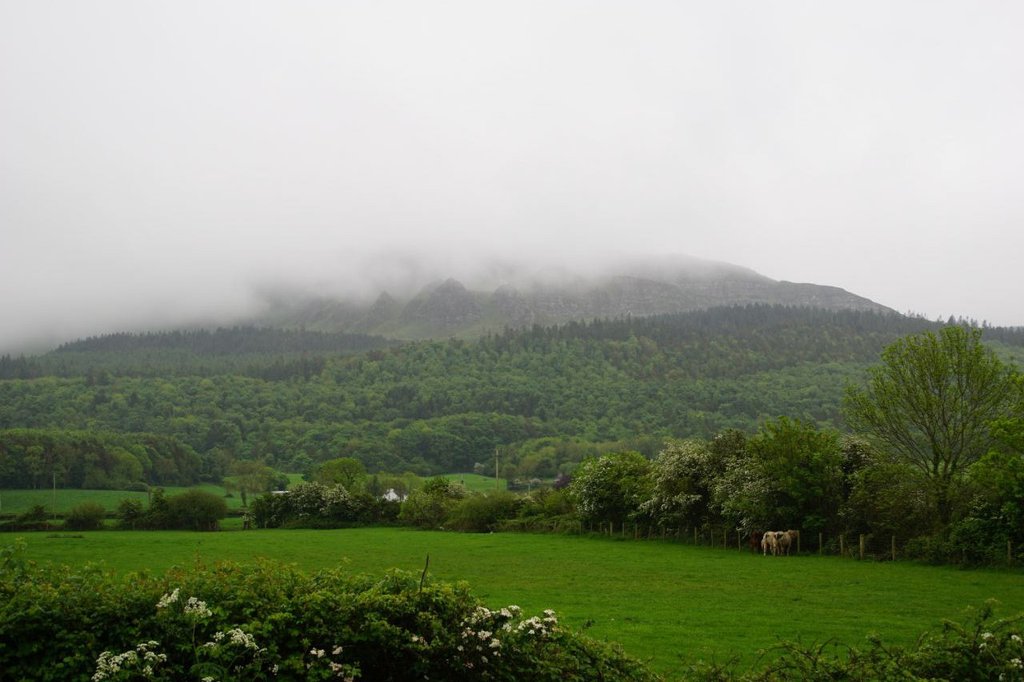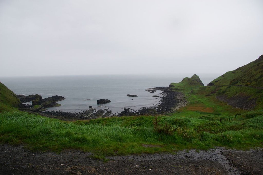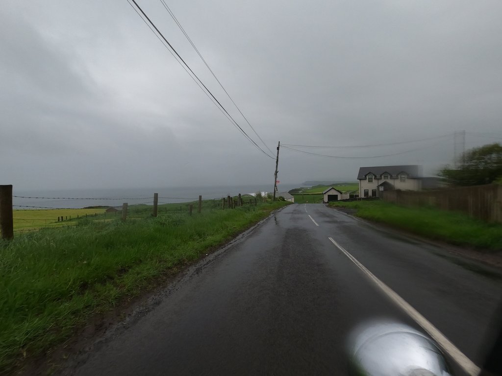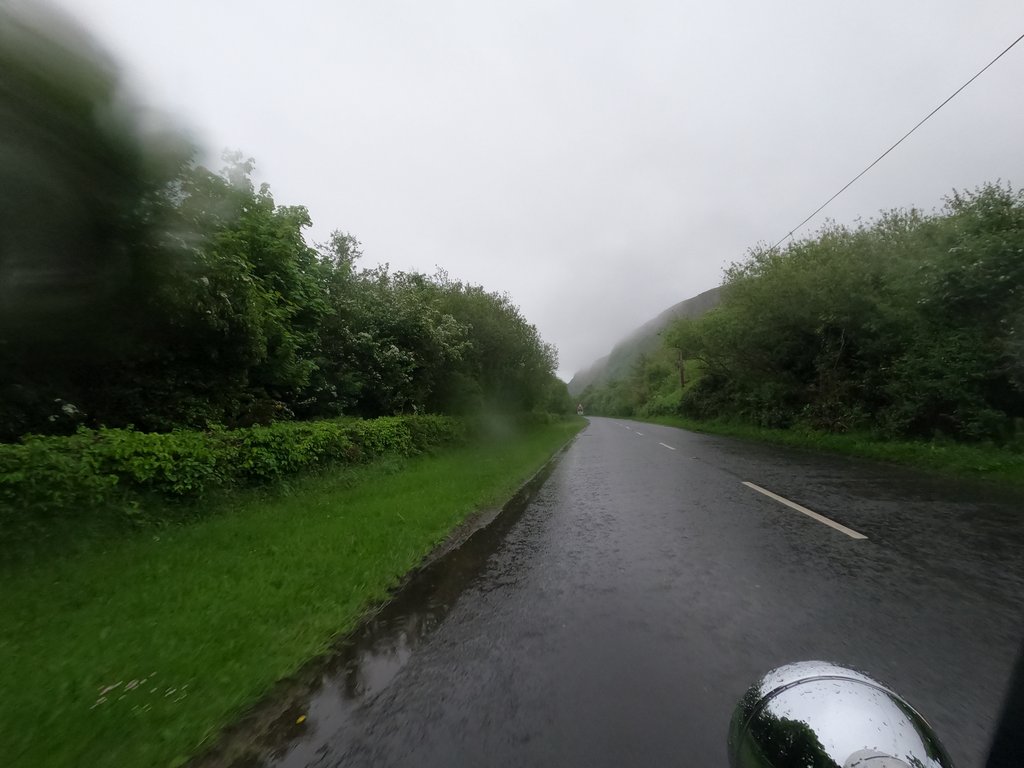 Wir verlassen Londonderry und pünktlich an der Stadtgrenze setzt der Regen ein. Die Wolkenstimmung entlang der Hügel ist ja eigentlich ganz schön – wenn sie nur nicht so nass wäre!!