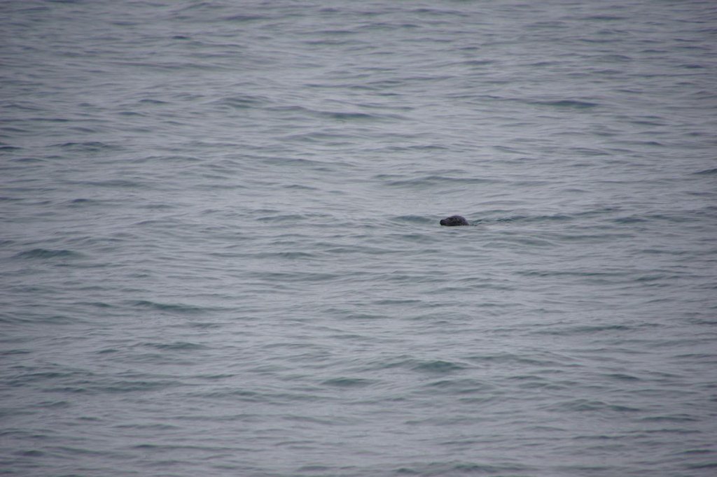 Etwa auf halber Strecke taucht ein kleiner Zuschauer aus dem Meer auf. Aber so schnell wie er gekommen ist, ist er auch schon wieder weg.