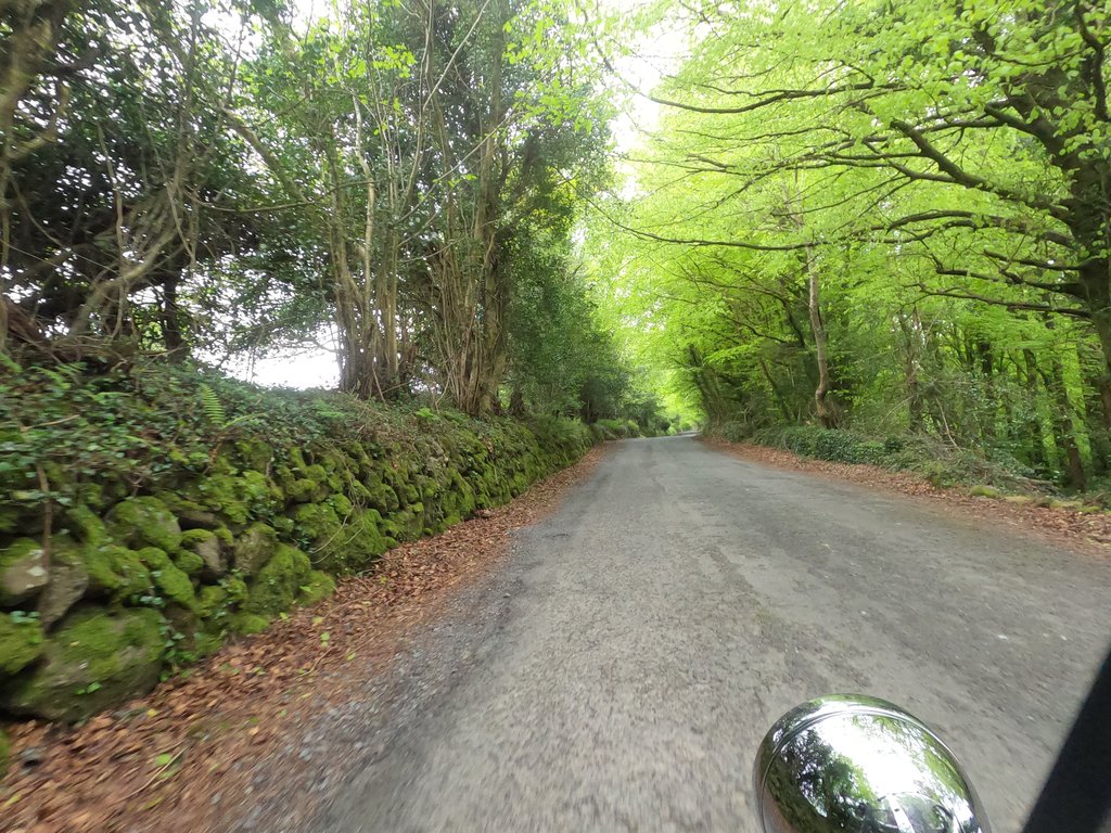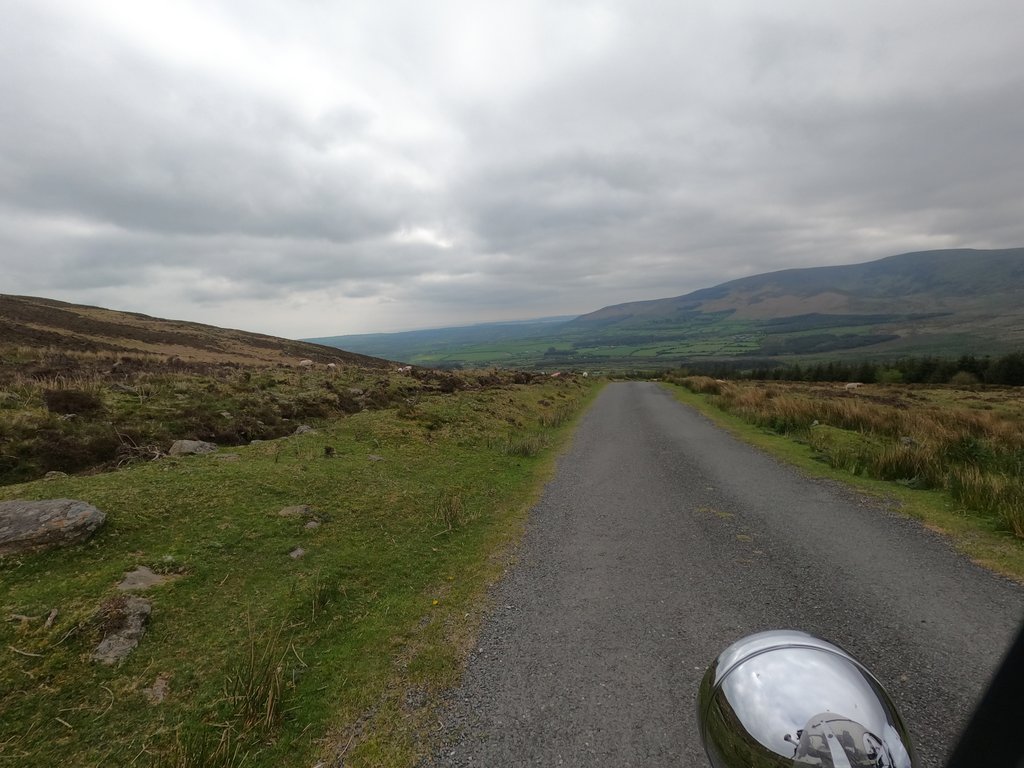 Außerdem gibt es ja auch noch Pferde, schöne Landschaft, alte Steinhaufen (Kirchen, Burgen und nicht mehr identifizierbares), Berge....also kurzum ich fühle mir wie im Paradies! Das einzige Problem ist – meine Kamera sieht das nicht. Die Steinwälle & Hecken, die hier als Zäune dienen, sind genau so hoch, dass ich vom Motorrad aus noch drüberlinsen kann - aber die Kamera sitzt ja leider etwas tiefer...