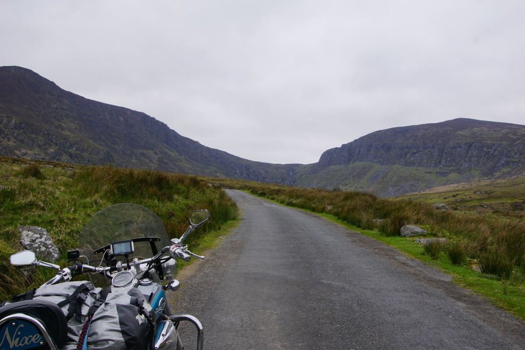 Der Wechsel auf die linke Straßenseite funktioniert erstaunlich gut, was aber vermutlich auch daran liegt, dass es aus dem Hafen raus nur eine Spur gibt. Nixe kriegt noch einen kurzen Tankstop, dann geht es endlich auf die ersten Kilometer irische Straße!! Die Muppetshow vor mir bleibt mir erstmal erhalten.