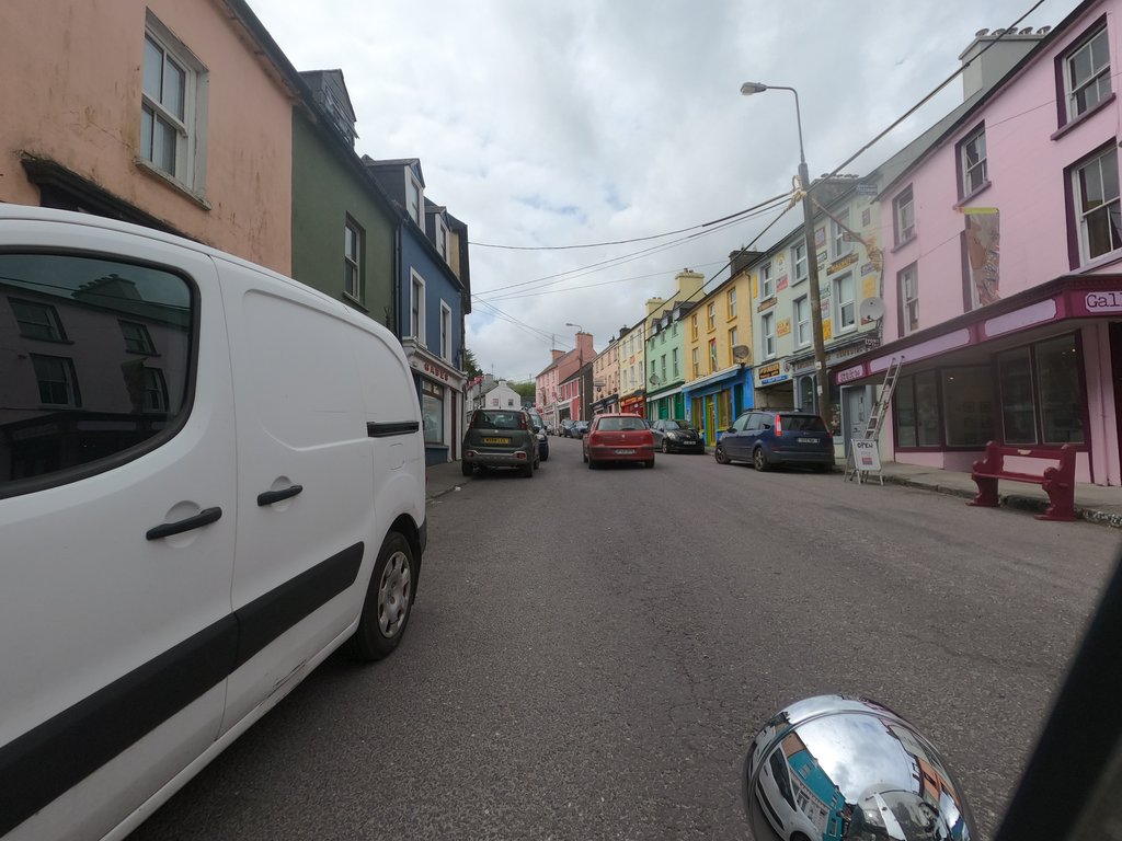 Weit kommen wir erstmal nicht. Es herrscht Berufsverkehr. Und wer bei uns schonmal gedacht hat „Diese Straße ist so eng, die sollte eigentlich nicht in beide Richtungen befahren werden“ - der war noch nie in Irland. Denn hier kann man auf solchen Straßen auch noch beidseits parken!