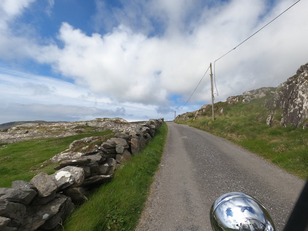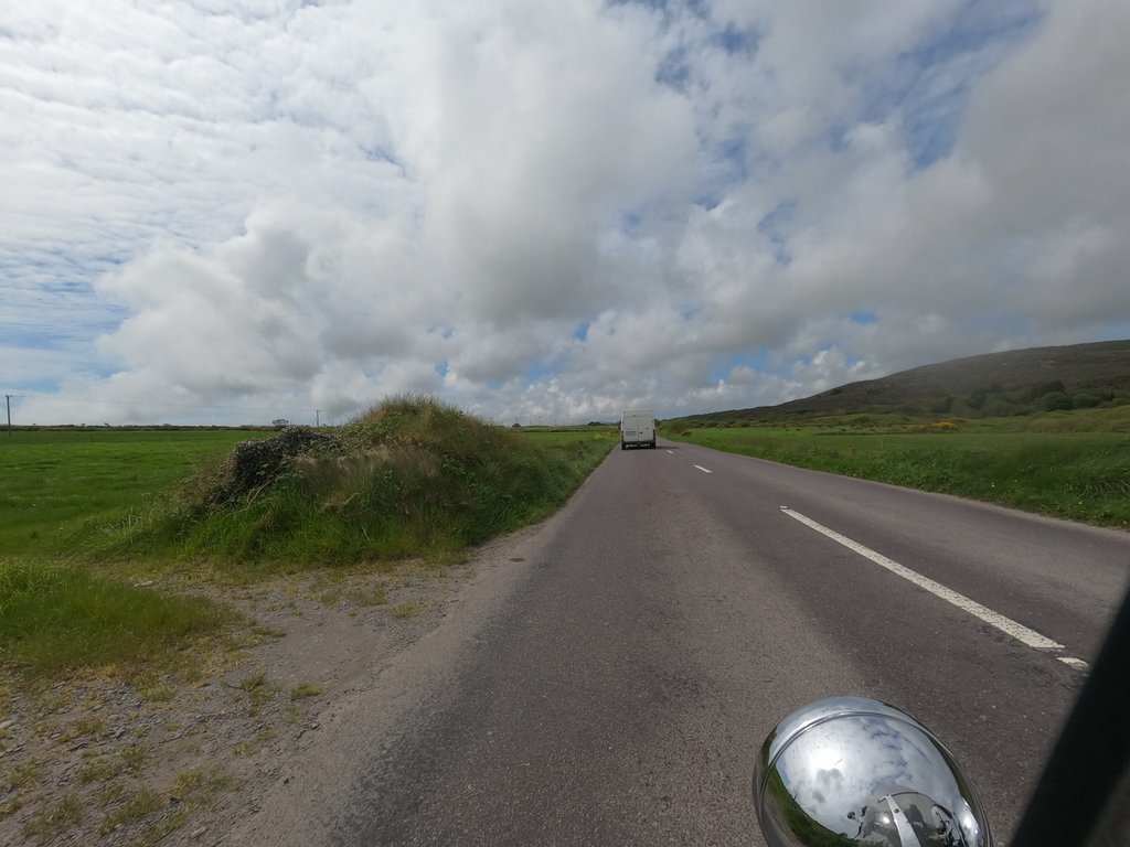 Zu den irischen Straßen muss jetzt mal eins gesagt werden – grundsätzlich sind die meisten so breit, dass zwei Fahrzeuge aneinander vorbei passen. ABER – dafür müssen beide fahren können. Das ist leider oft nicht der Fall, ich vermute Touristen am Steuer, und so gleicht das ganze oft eher einer Stop & Go Übung aus der Fahrschule sobald man sich ein Auto eingefangen hat.