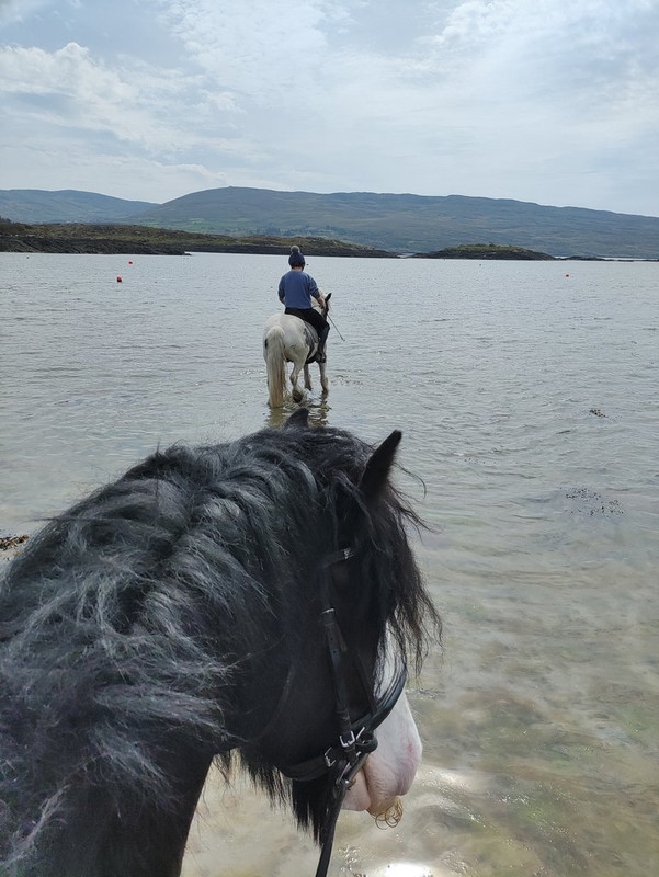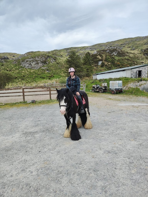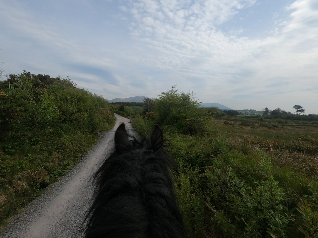 Mit 1PS geht es auf Bob durch die irische Landschaft. Für mich war das ein Traum, einen Irish Cob auf Irland zu reiten. Ich liebe diese felligen Füße ![]()