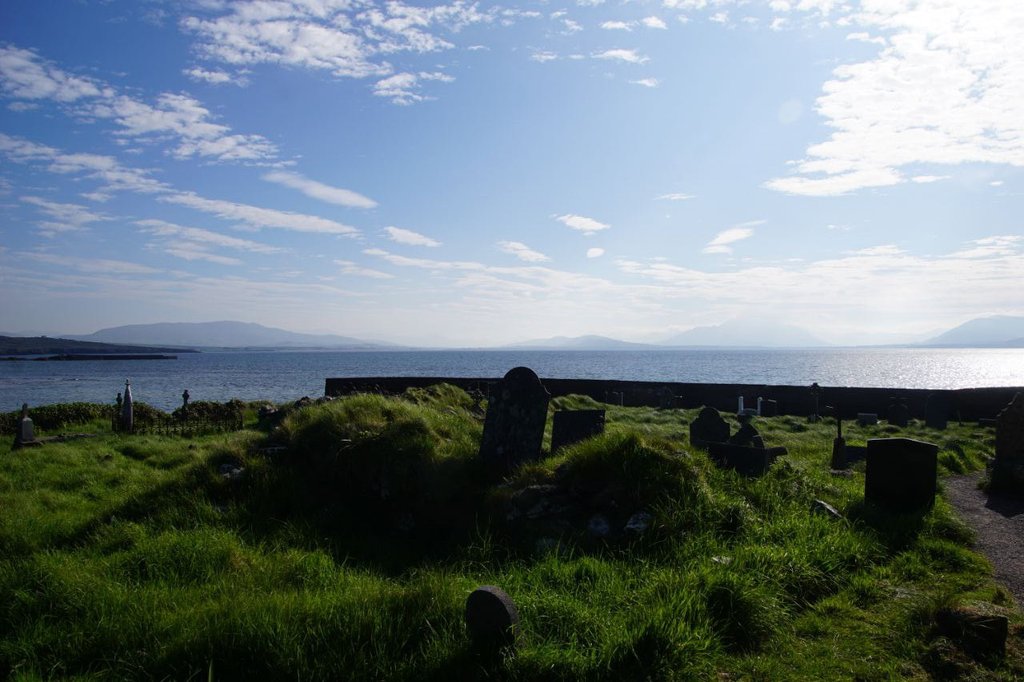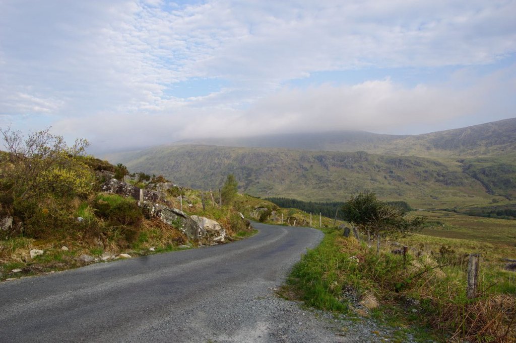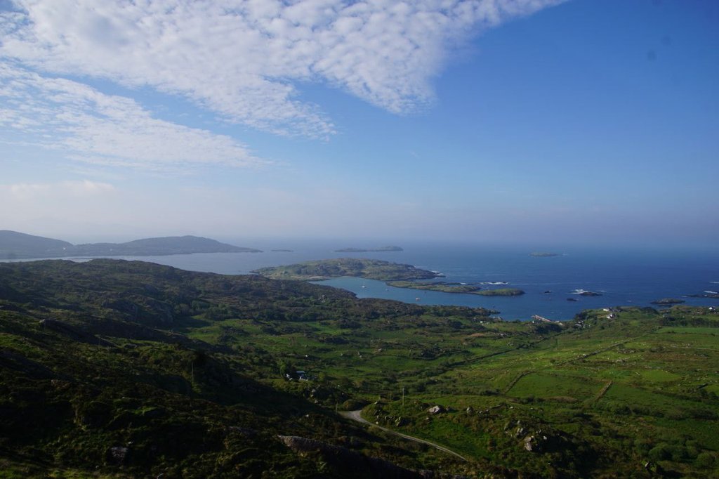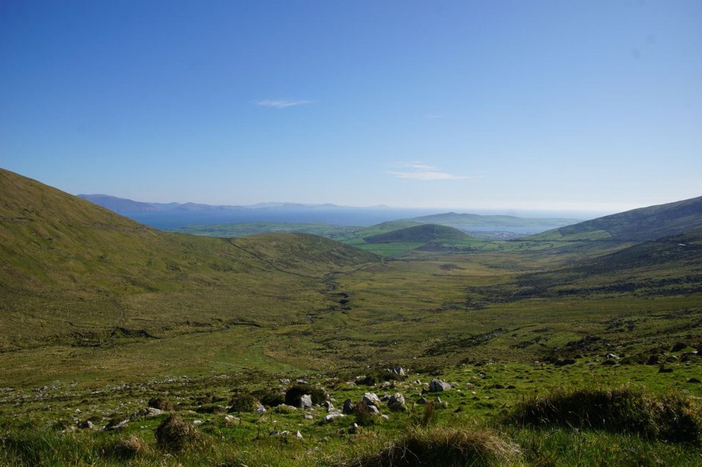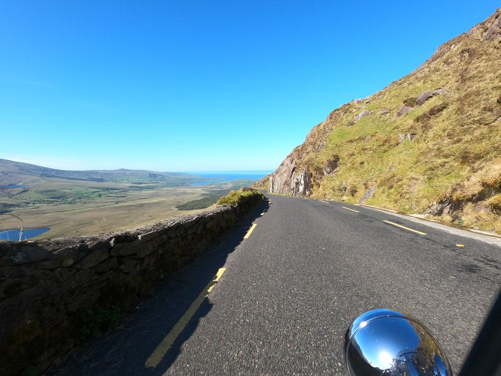 Auf der Weiterfahr lernen wir dann, dass Irland nicht nur schöne Küstenstraßen hat. Die Fahrt von Portmagee bis Dingle zieht sich unheimlich und die Straßen auf der Dingle Halbinsel gehen fast ausschließlich schnurgeradeaus. Aussicht gibt es auch nicht viel und wenn dann wird sie von den seitlichen Steinwällen versperrt. Etwas ermüdend das Ganze...