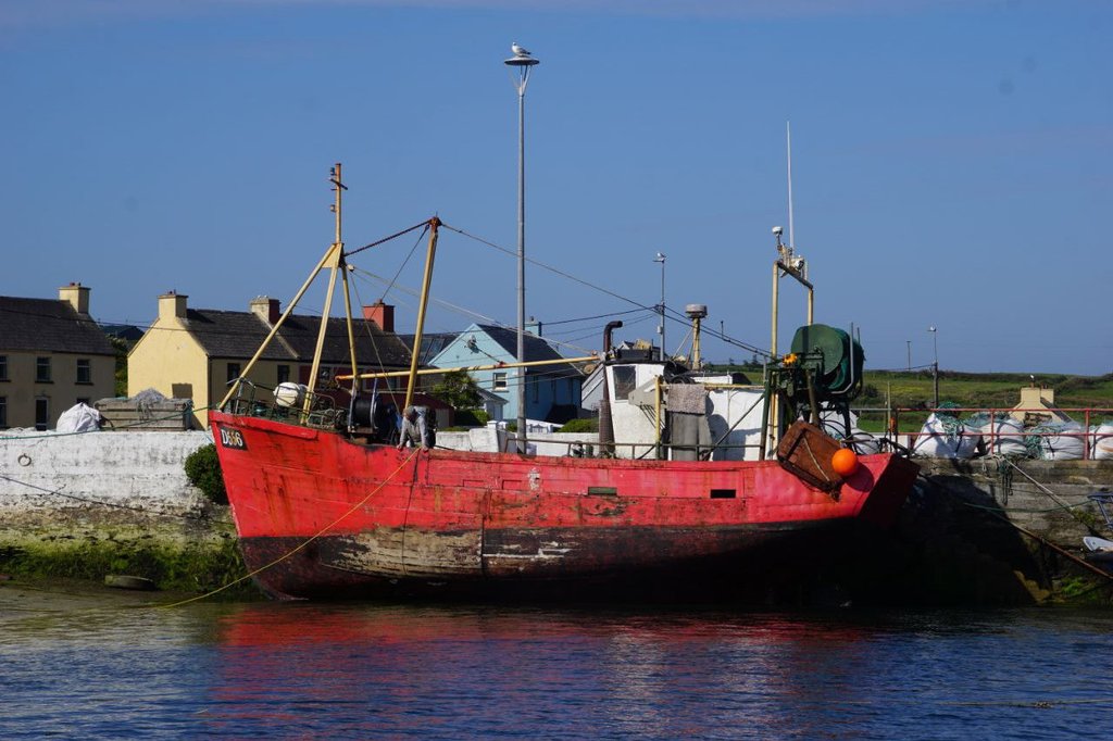 Dann laufen wir den Hafen von Portmagee an. Nixe bekommt den letzten Parkplatz im Hafen...