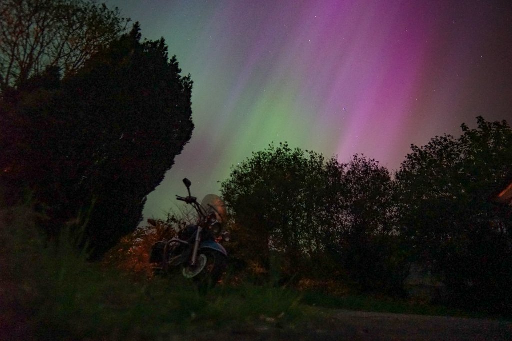 Und ich soll Recht behalten. Wer hat schon ein Bild von seinem Motorrad mit Nordlichtern? ![]()