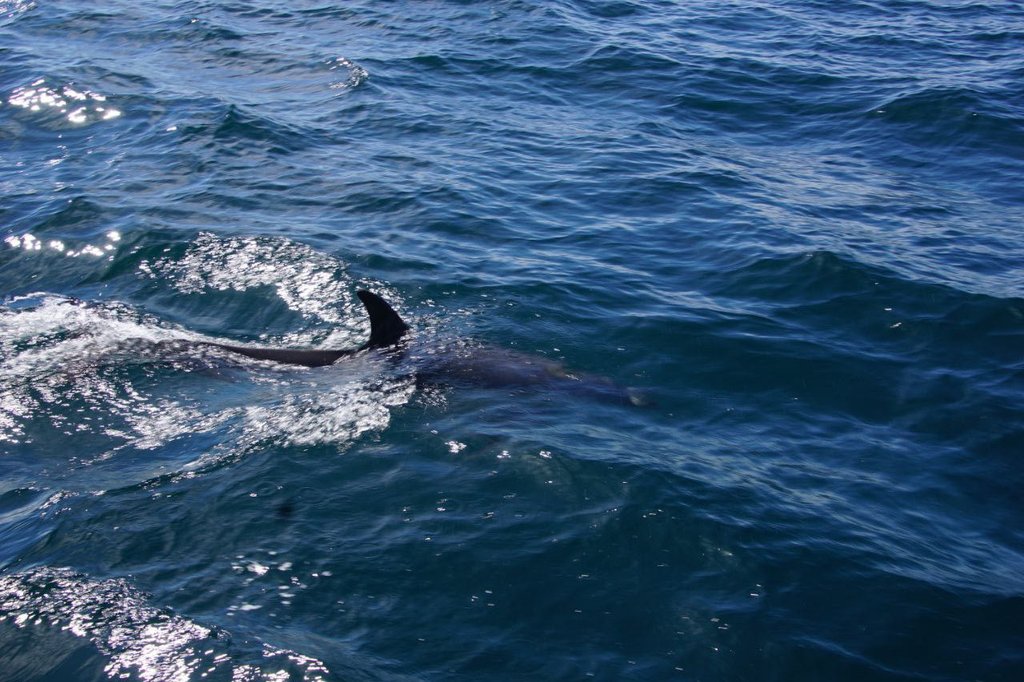 Dann wir des Zeit für die Rückfahrt. Etwa auf halber Strecke bekommen wir Begleitung von ungefähr 6 Delfinen, die unter dem Boot kreuzen und in unseren Wellen springen. Bei dem Seegang und der Geschwindigkeit dieser Tiere grenzt es schon an ein Wunder, dass mir überhaupt das ein oder andere Bild gelungen ist! Auch ohne gelungene Fotos war das ein wunderschönes Erlebnis.