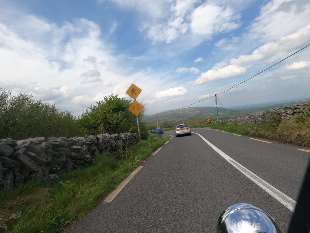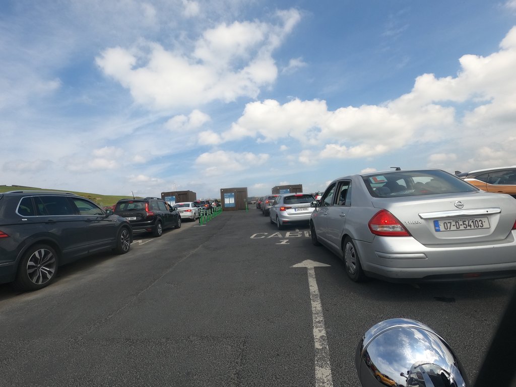 Mein nächstes Ziel sind die Kliffs of Moher. Ich kann mein Ziel auch schon sehen, leider staut es sich aber vor dem Parkplatz. Und zwar wie! Nixe wird es zu warm und sie wirft erstmal den Kühler an. Ich werde trotzdem gegrillt.