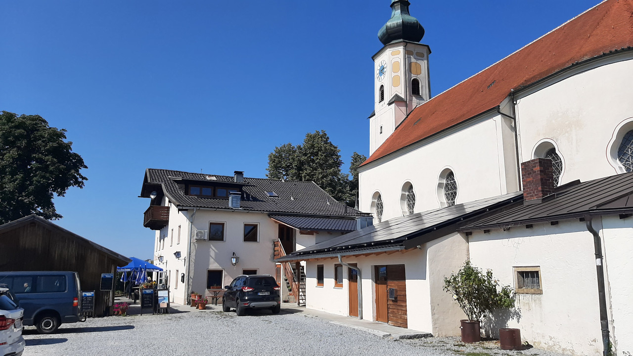 Nach Kötzting fuhren wir zu einer Wallfahrtskirche in Weissenregen. Hier hatte man einen genialen Blick zurück zum Hohen Bogen und zum Kaitersberg. Bei dieser Kirche gab es auch ein Gasthaus mit Biergarten.