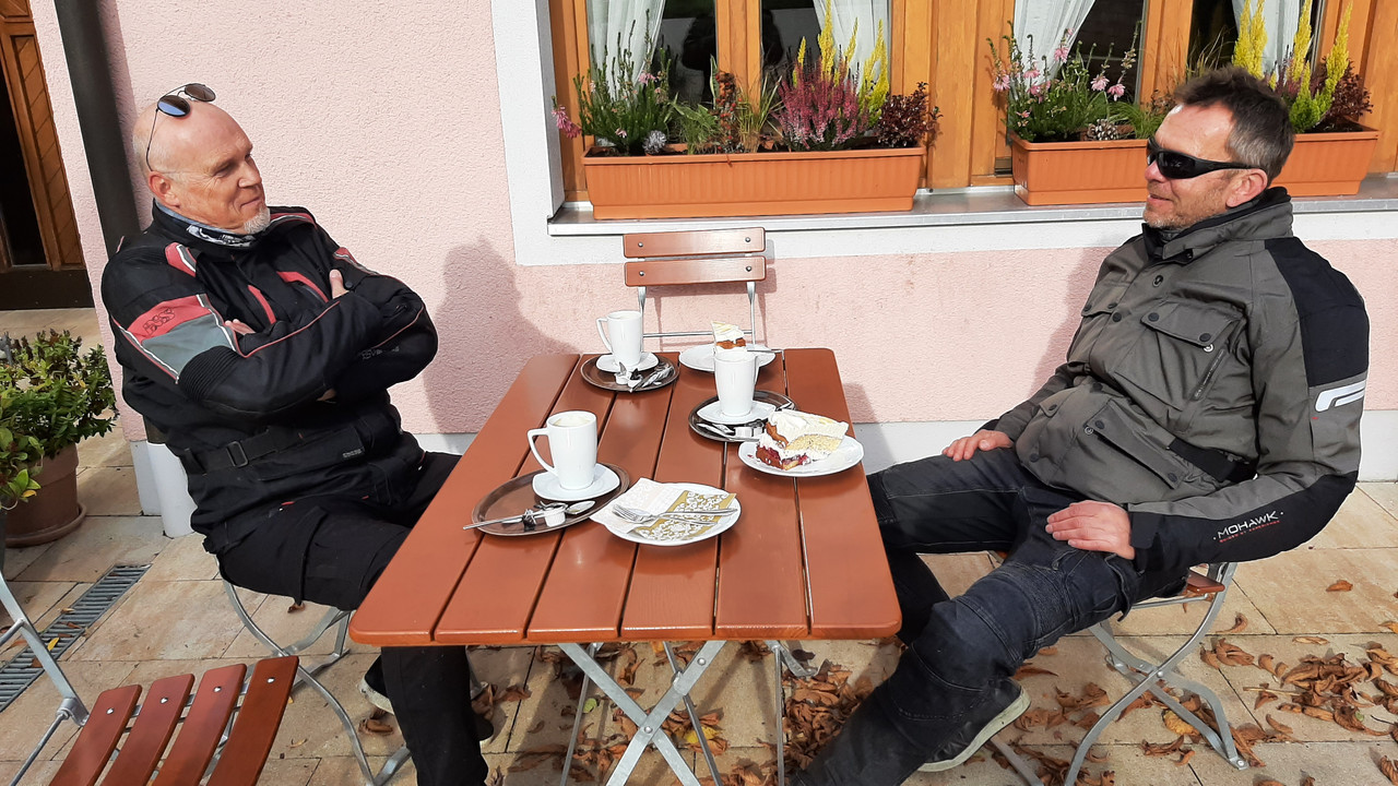 Zitat von Poessi am 30. Oktober 2021, 18:19 UhrHeute haben wir nochmal Gas gegeben und sind eine schöne Tour gefahren. Gefreut hat mich, das Wolle und Jörg dabei waren. Sonnentechnisch war es nicht so toll, aber es hat trotzdem gepasst. In Eckeltshof beim "Gasthof zum Ritter" gabs erst mal einen Kaffee, Kuchen und Apfelstrudel.