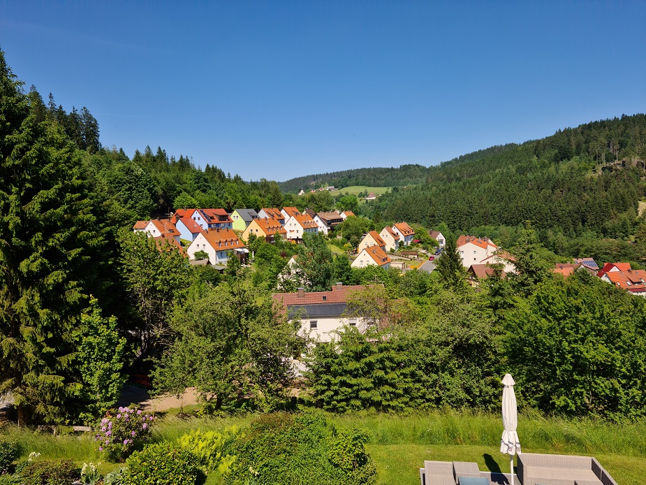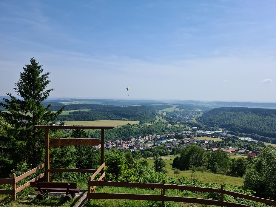 Das war auf der Triniushütte in Rauenstein und das liegt praktisch am Fuße des Thüringer Waldes . Ein paar Gemeinden haben sich 2012 zu der Gemeinde Frankenblick zusammengeschlossen, da man eben von hier aus ein herrlichen Blick ins Frankenland hat. Das nur nebenbei.