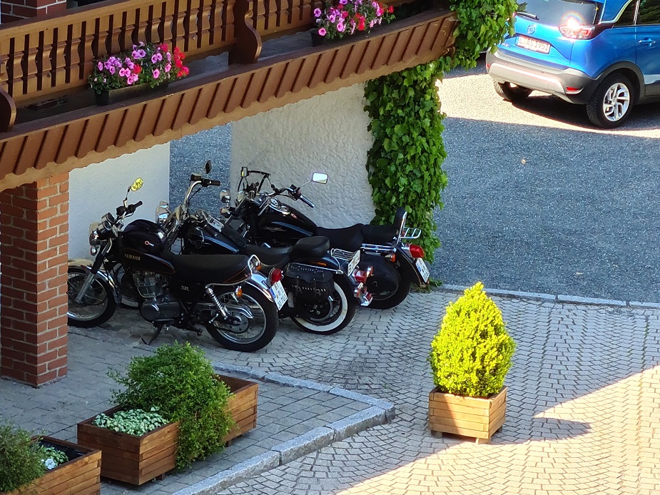Kilometerstand 57.516. Nach drei Stopps und Tanken von etwa 4 bis 5 Liter und 35 Grad Celsius im Schatten kam ich dann gegen 15:30 Uhr in meinem Hotel im schönen Warmensteinach an. Ein Glück, dass ich mir genug zum Trinken mitgenommen hatte.