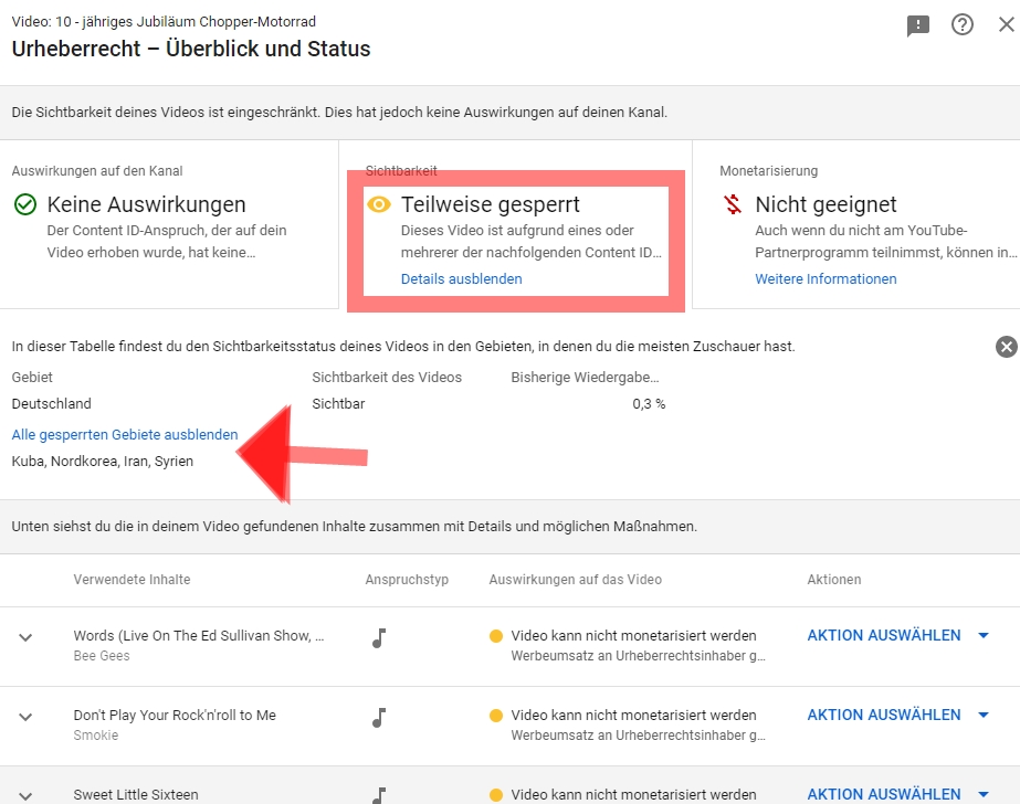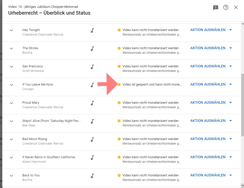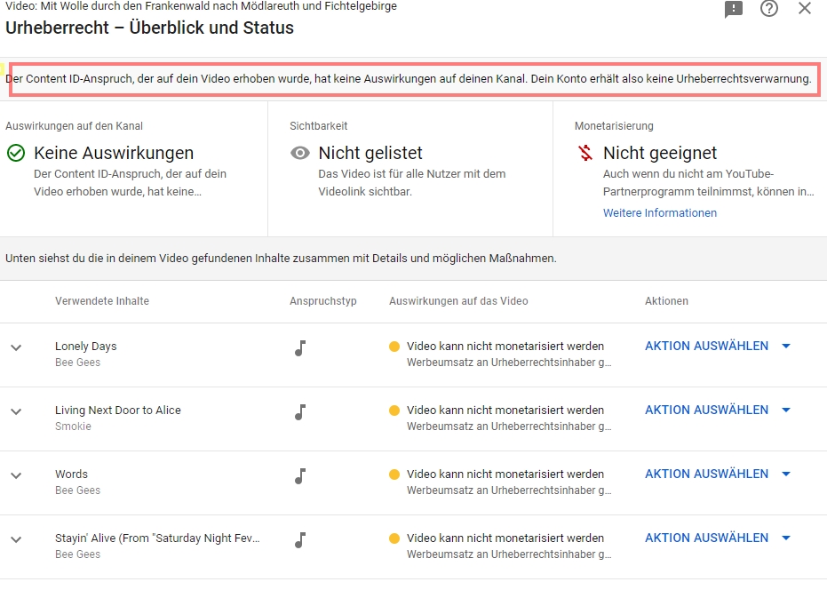 Zitat von Poessi am 2. April 2021, 11:32 UhrIch hab ja schon des öfteren Videos mit Musik auf YouTube hochgeladen. Dabei muß man ja auf Urheberrechtsverletzungen usw. achten. Beim Hochladen des Videos wird jetzt eine Vorabprüfung auf Urheberrechtsprobleme durchgeführt. Es gibt dazu ein Erklärungsvideo auf YouTube. Es ist zwar in englisch, aber zumindest mit deutschen Untertiteln.