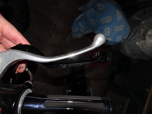 Da Grit recht kleine Hände hat, ist die Erreichbarkeit der Kupplungs - und Bremshebel nicht immer so einfach. Im Zubehörhandel gibt es ja diese CNC gefrästen Hebel die durch verstellen näher an den Griff kommen. Grit hatte bei Bomber seiner Frau, Sandra, probiert wie es sich anfäßt mit den Griffen und Hebeln und war überzeugt, daß das genau das Richtige sein wird. Leider gibt es sowas nicht für die VT600. Außerdem sind die Griffe in der Zolllenkerausführung im Durchmesser größer als bei 22mm Lenkern (logisch).