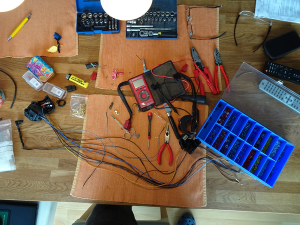 So sieht es aus, wenn man die CBR600 Schalterpakete auf die Bedürfnisse der VT600 umstrickt.Hat aber alles funktioniert.