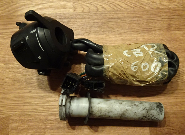 Als nächstes habe ich mich kundig gemacht für welche Motorradmodelle diese CNC Hebel angeboten werden. Meine Entscheidung fiel auf die Honda CBR600. Also habe ich angefangen Schalterpakete, Bremsarmatur und Kupplungshebel zu bestellen.Schalterpaket links und Gasgriffhülse