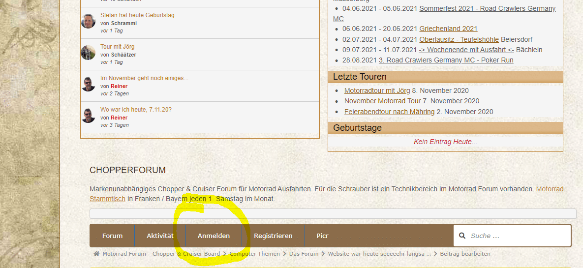 Bikersuche im Cruiser Forum (Nur sichbar, wenn du im Chopper-Motorrad Forum angemeldet bist)