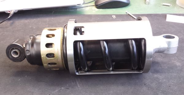 Jetzt komme ich aber leider nicht weiter, weil ich erstmal 'nen Federspanner brauche. Bei den Progressive Suspention bei meiner Mean war das einfacher. Da hab ich die Feder an der Drehbank zusammendrücken können und dann konnte ich das Teil zerlegen.