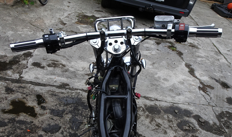 Da mir der Lenker beim Rechtseinschlag etwas zu dicht über den Tankdeckel ging, habe ich mir eine Risererhöhung gedreht und anschließend verchromen lassen.