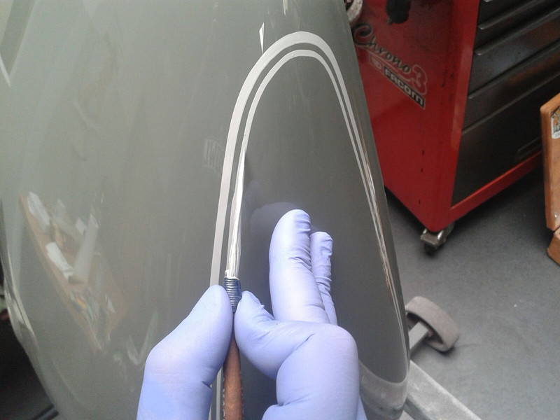 Der Tank hielt keine Überraschungen unter der dicken Lackschicht bereit. Keine Dellen und nix gespachtelt. Sieht tadellos aus. ![]()